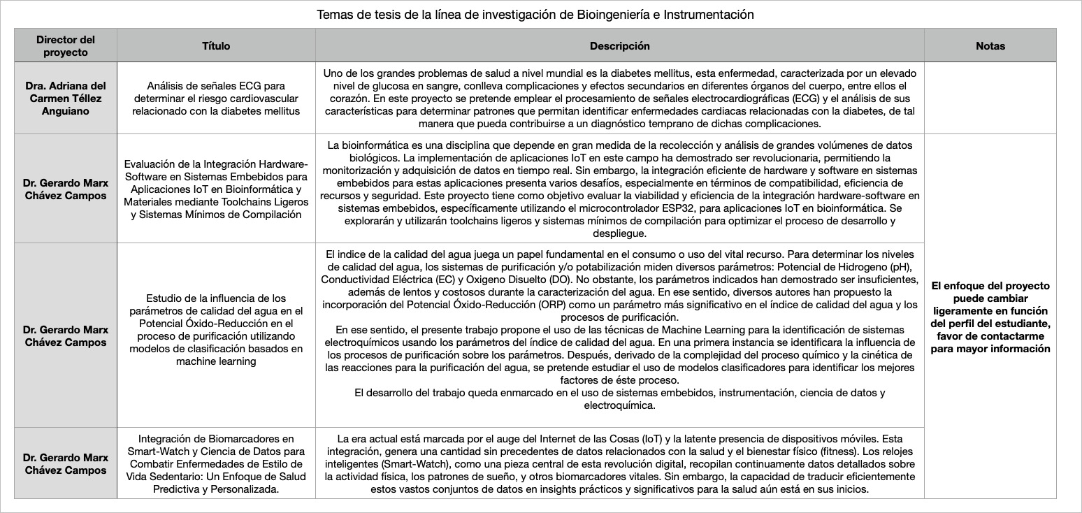 Adjunto a este correo encontrarán los temas de tesis propuestos por los profesores de las tres líneas de investigación de nuestro posgrado: